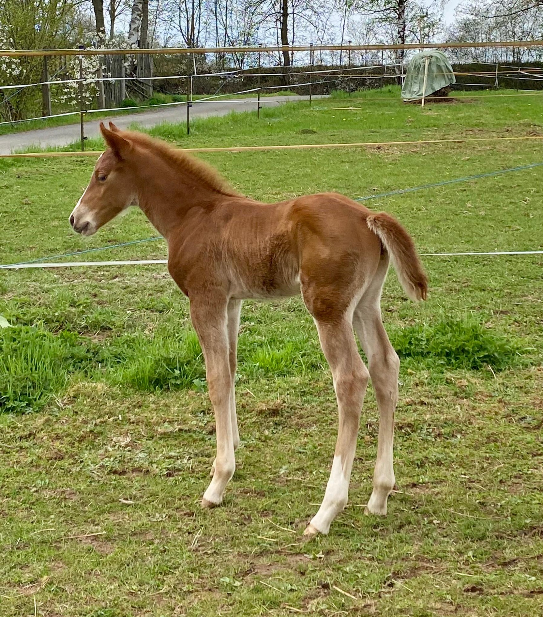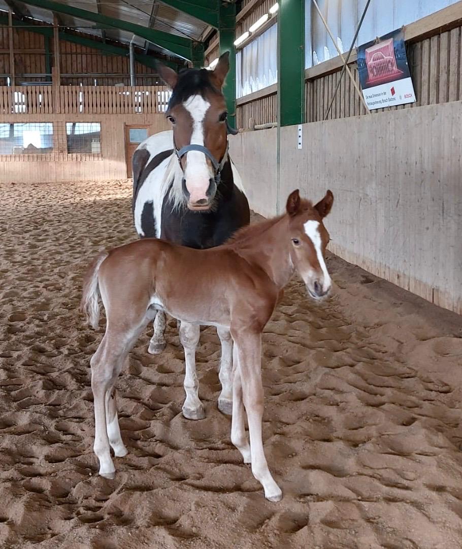 Vom ersten Moment an zeigt er, was in ihm steckt: neugierig, mutig und voller Lebensfreude entdeckt er Schritt für Schritt seine Welt. Ob beim Toben auf der Koppel oder beim Kuscheln an Mamas Seite – er hat einfach das gewisse Etwas, das Herzen berührt.
